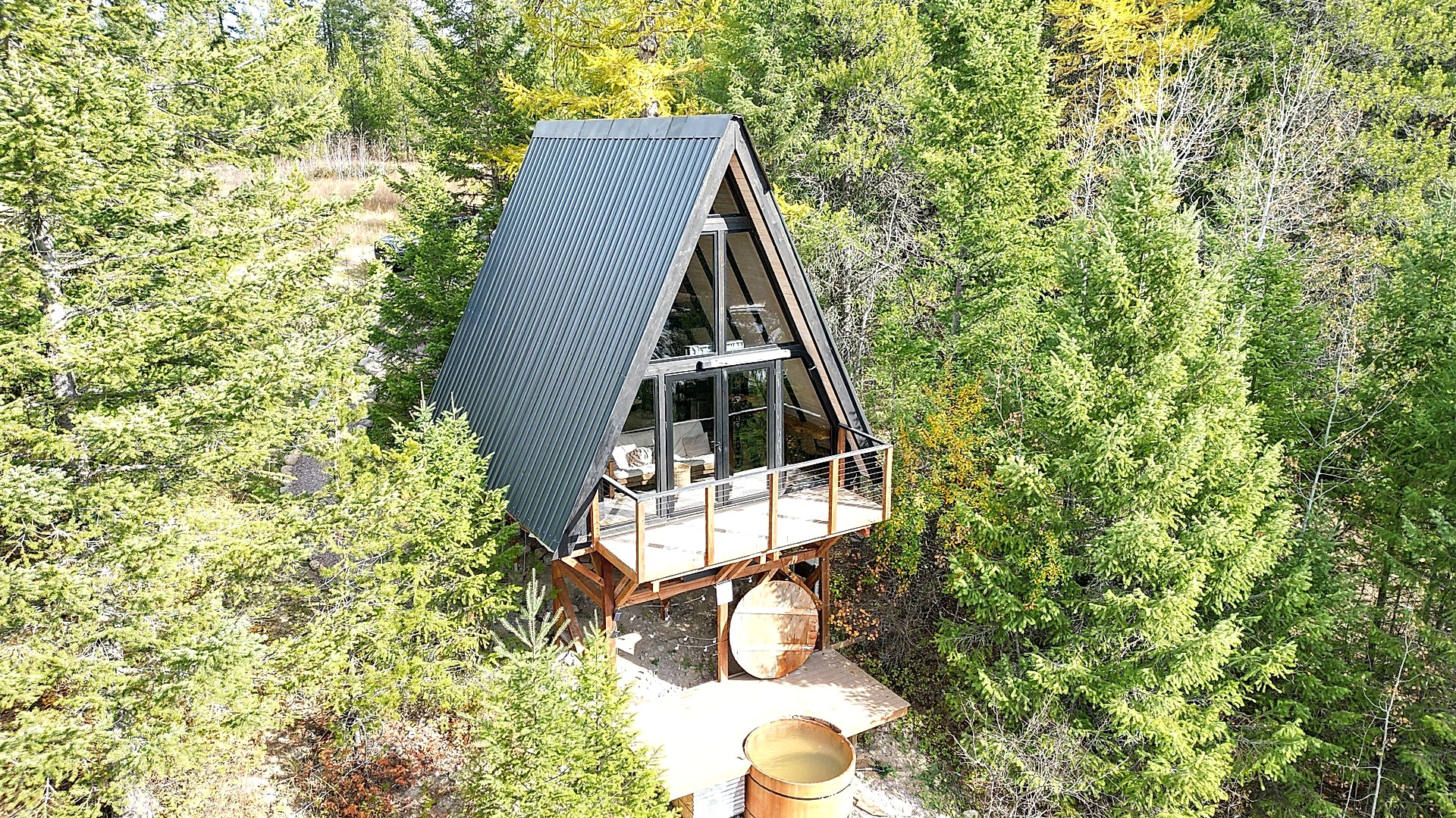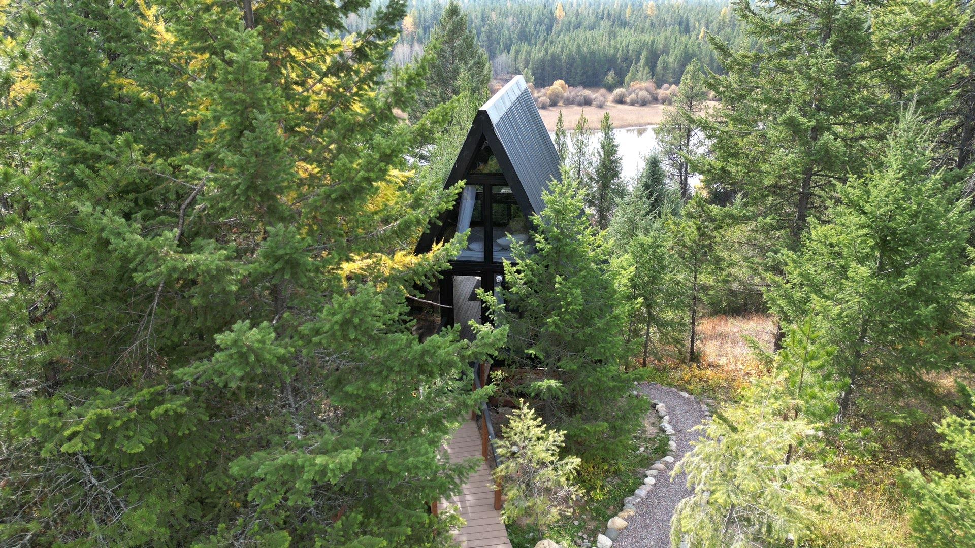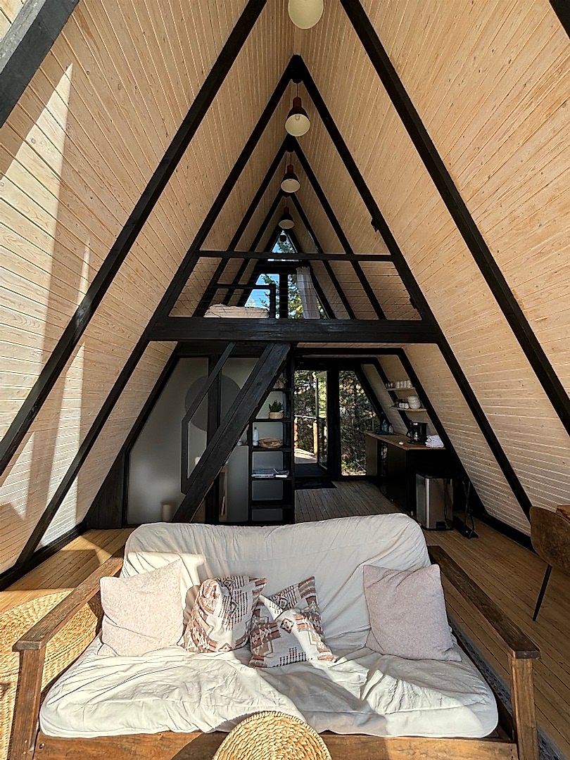 In 2023, we proudly exported our first shipment to the USA: four Stella 53 Cabin Kits nestled near Glacier National Park, Montana. These A-Frame cabins, situated beside a tranquil pond and enveloped by expansive forested surroundings, now operate as boutique rentals in an exceptional natural environment.